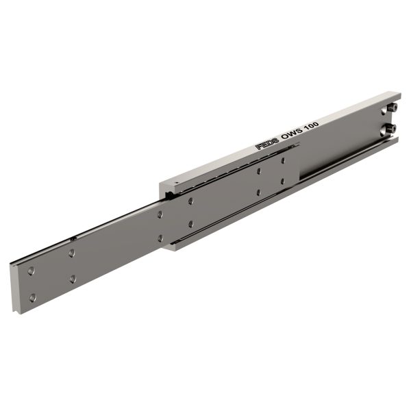 The NDOWS2826-B is an extreme load/duty full extension telescopic slide (40Kg–170Kg/pair) suitable for a wide range of applications, including maintenance platforms, display vehicle extensions or aircraft wing walkways. At 530mm one pair has a full extension load capacity of 170Kg with a very high safety margin.