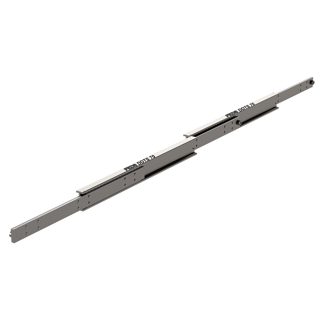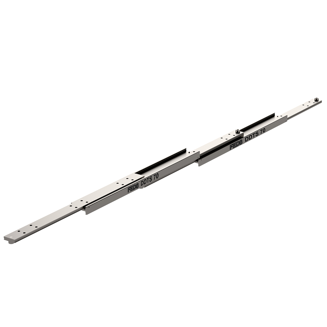 The DDTS range of slides offer a super extension of 200% as standard. Utilising heavy duty ‘I’ beams the slide is able to maintain rigidity in demanding applications where the travel exceeds the closed length by a factor of two.
