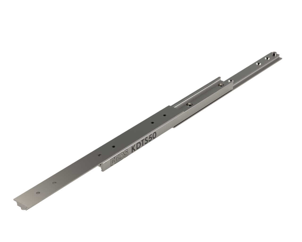Additional product variations can be produced with bespoke closed lengths, extensions, mounting options, surface treatments and stainless ball bearings/cages. The KDTS-50 drawer slide may also be fitted in the major axis (upright). The load capacity will increase to equal standard DTS mounting configuration. It can be supplied with a 120% extension, which will increase the deflection at full extension. Please consult our sales engineers for this no cost option.