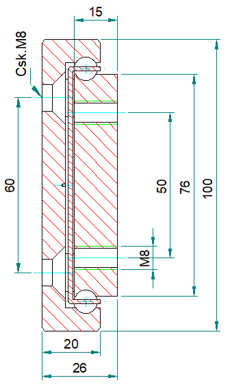 The slides are manufactured from cold drawn steel C45E+C in accordance with EN 10277. Standard ball cages are manufactured from zinc plated sheet metal, and the ball bearings are carbon steel C85 G100 in accordance with DIN 5401. A single OWST-100 weighs 17.26 kg per metre.
