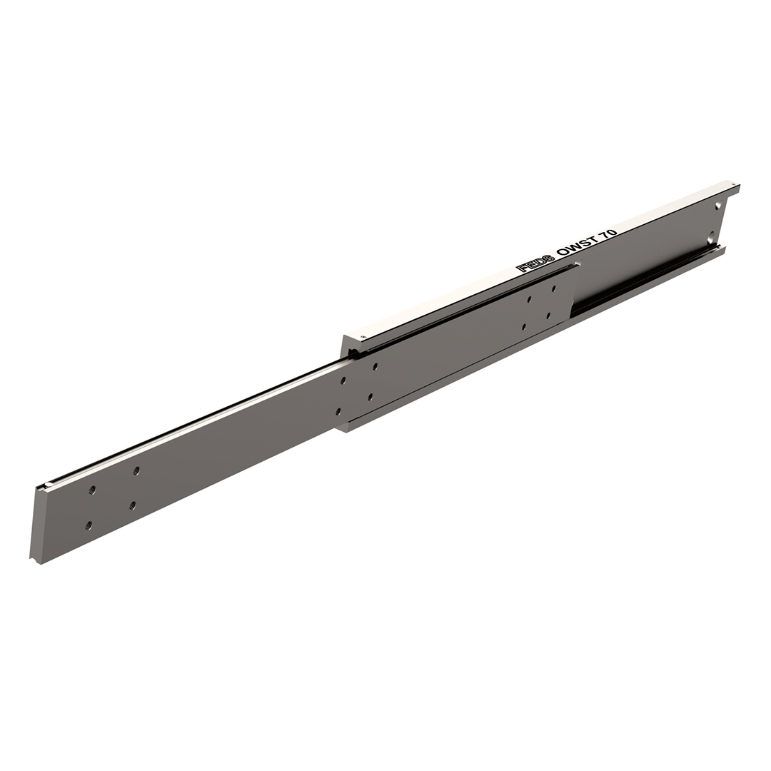 The OWST-70 is a rugged slide with an extension front and rear, equal to the closed length, which has been designed for load maximisation from a small space envelope. Particularly suited to heavy duty seating for trains and military, it also has a wide range of applications where torsional strength is paramount.