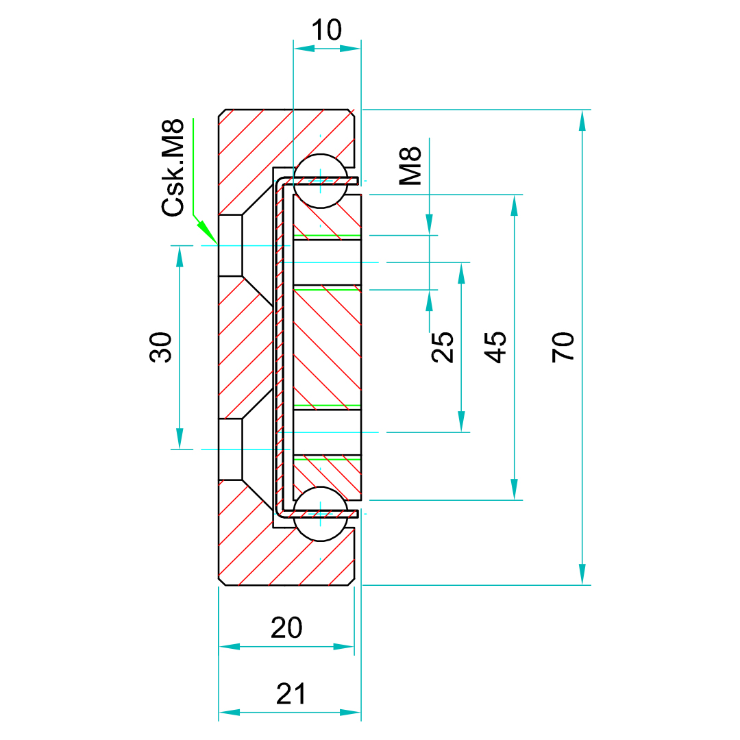 The slides are manufactured from cold drawn steel C45E+C in accordance with EN 10277. Standard ball cages are manufactured from zinc plated sheet metal, and the ball bearings are carbon steel C85 G100 in accordance with DIN 5401. A single OWST-70 weighs 9.59 kg per metre.
