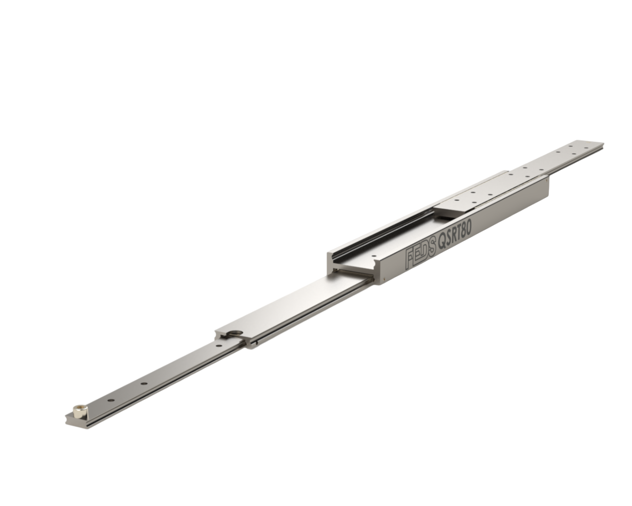 The QSRT-80 slide has a corrosion resistant electrolytic zinc coating as per ISO 2081, and is precision engineered to produce a smooth operational movement and eliminate problems encountered with looser-fit slide products. The slides are manufactured from cold drawn steel C45E+C in accordance with EN 10277. Standard ball cages are manufactured from zinc plated sheet metal, and the ball bearings are carbon steel C85 G100 in accordance with DIN 5401. A single QSRT-80 weighs 12.24 kg per metre.