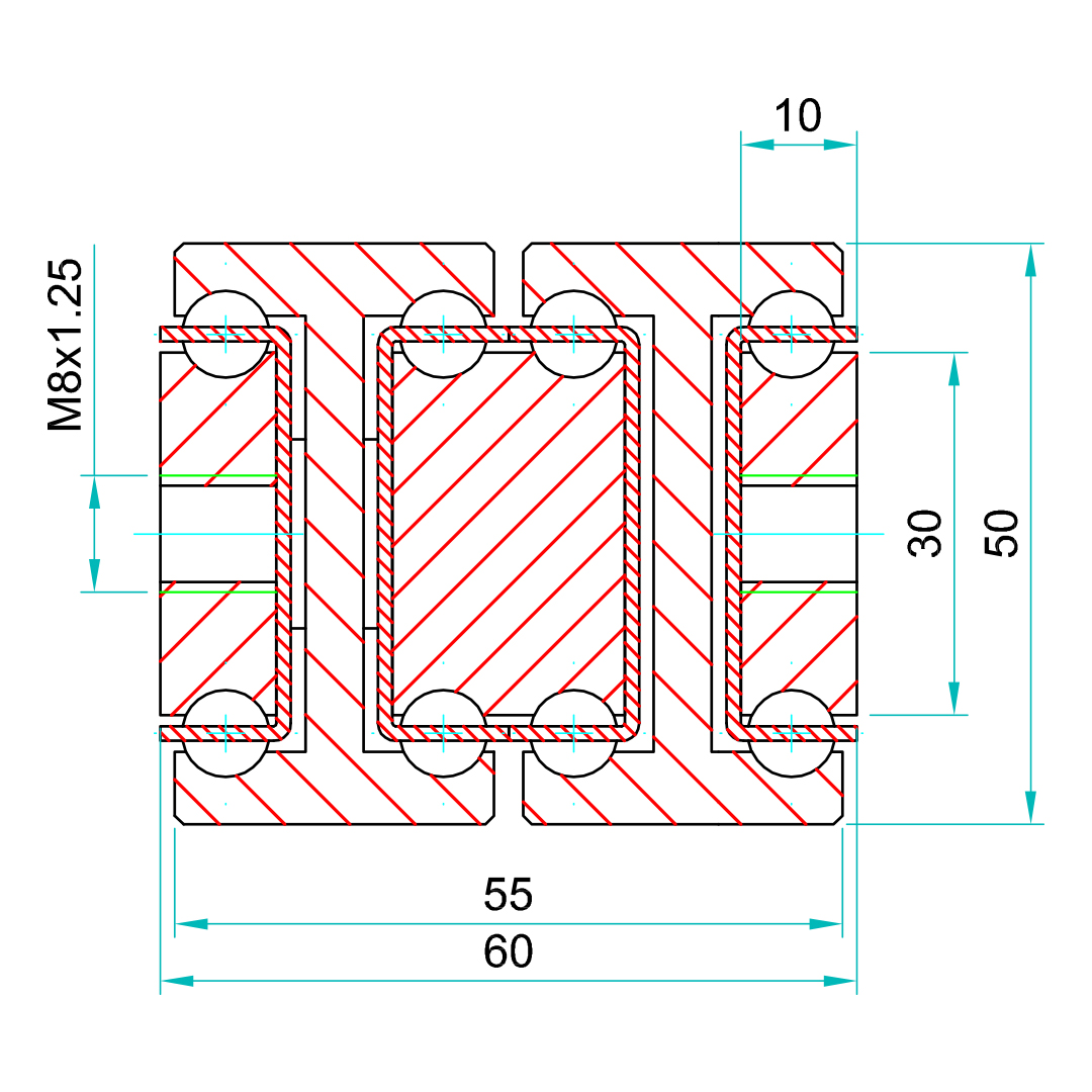 Due to the extreme strength of the mobile ‘I’ beam, this slide is robust to applied loads when in the extended position making it an excellent choice for dynamic applications. Unlike many other slides manufactured from rolled ‘C’ sections. There are no plastic parts in the manufacture of this range, making it ideal for high temperature use. A single SDDTS-50 weighs 17.98 kg per metre.