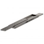 This is a heavy load/duty full extension telescopic slide (300-600 Kg/pair) suitable for a wide range of applications. At 500mm 1 pair has a full extension load capacity of 600 kg. Constructed from milled stainless steel 316L sections, with machined ball tracks for accuracy, it has excellent levels of shock and vibration resistance. Accordingly, the product is well suited to supporting military truck drawers, offshore stowage and train battery boxes. The slide beams, cages and ball bearings are manufactured from austenitic grade 316L (1.4404). End stop bolts and retaining pins are austenitic grade 304 (1.4301), completing the corrosion protection, There is the bespoke option to manufacture an all 316L product on higher production volumes.