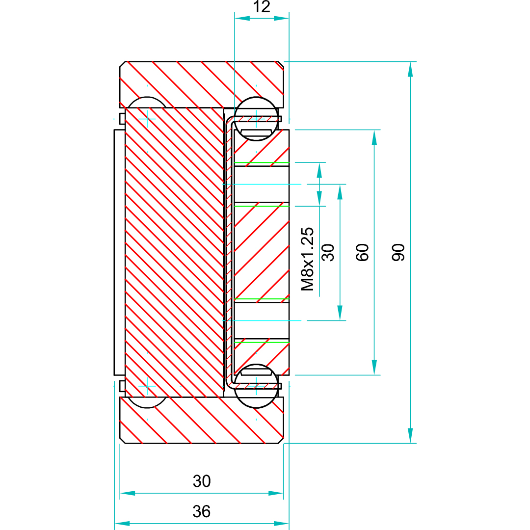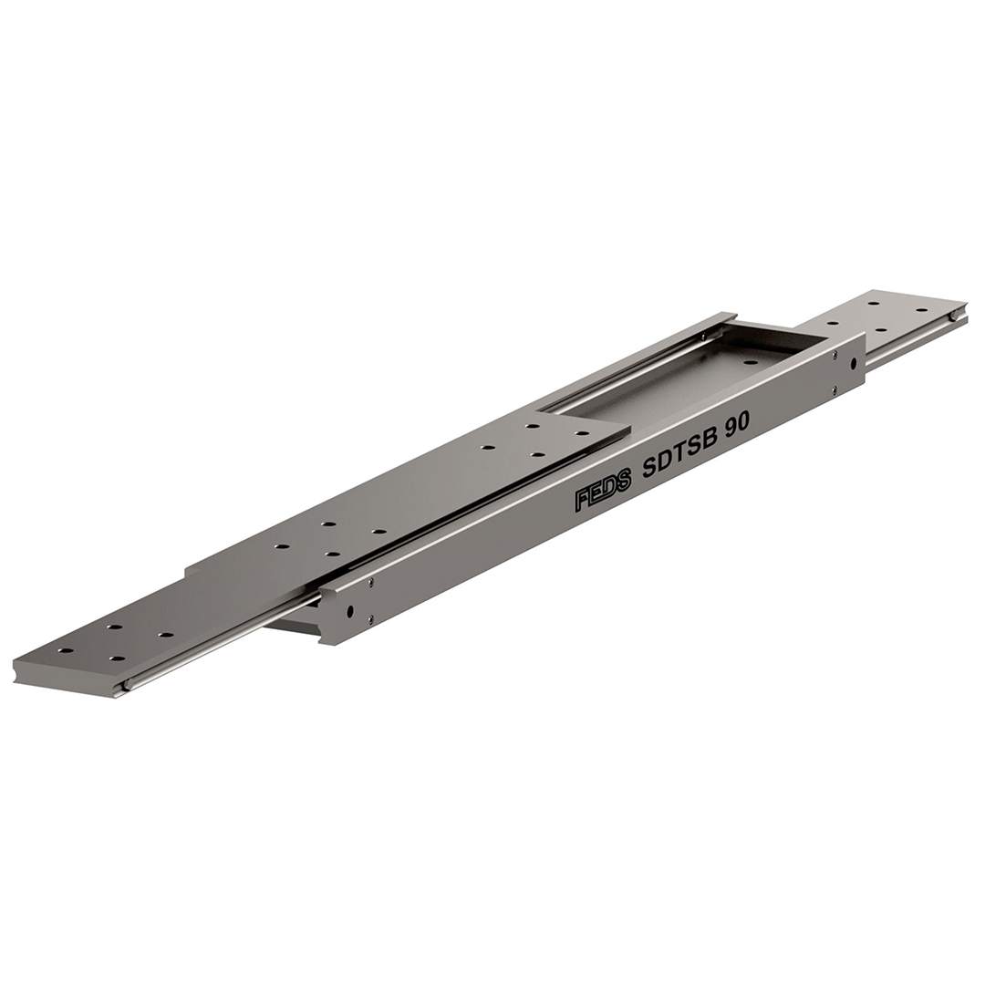 The slides are manufactured from milled stainless steel (inox) 316L. Standard ball cages are manufactured from stainless 316, and the ball bearings are 316L stainless steel. A single SDTSB-90 weighs 19.18 kg per metre.