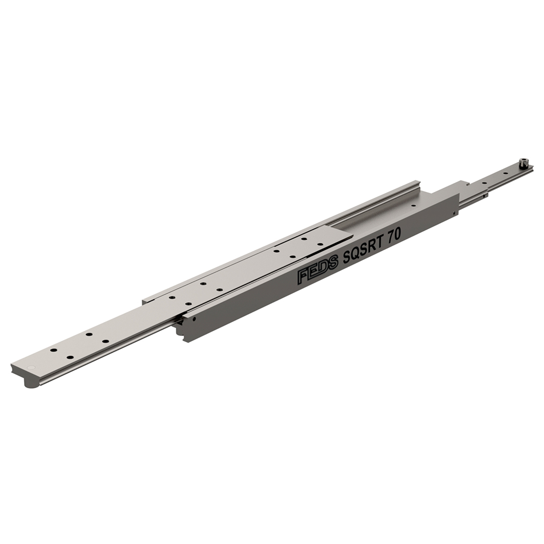 Four beam telescopic slides enable the drawer to be extended out 150% from the stowed position. A closed length of 1,000mm can provide 1,500mm of travel (2,500mm fully extended). The SQSRT-70 is used widely throughout the defence industry for weapons handling systems and train battery rafts in sub-zero conditions.
